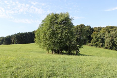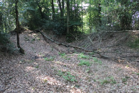 An dieser Baumgruppe hatte sich ein Schacht befunden, man kann die trichterförmige Vertiefung erkennen